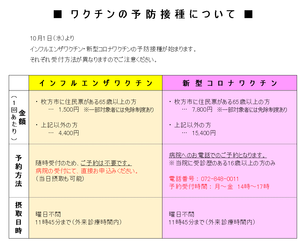 - <インフルエンザ・新型コロナのワクチン接種が開始されました>